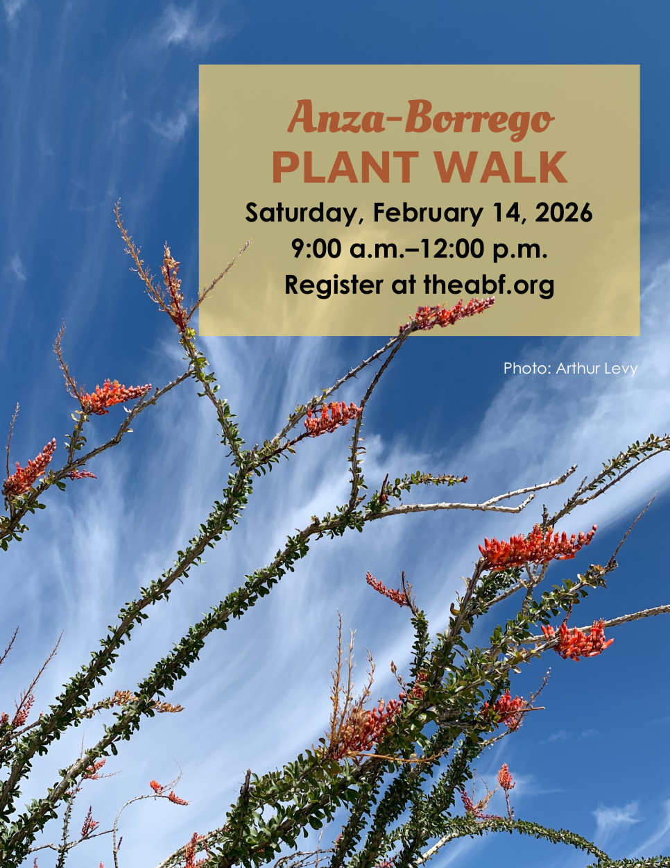 Join an expert botanist for a leisurely stroll through Anza-Borrego Desert State Park and uncover the hidden stories of desert plants—from brilliant wildflower blooms to the resilient species that thrive in harsh conditions. Learn how these fascinating plants adapt, survive, and shape one of California’s most unique ecosystems.