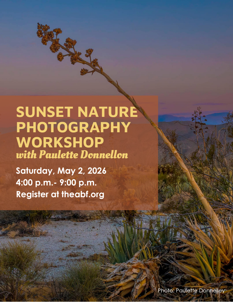 - We’ll begin the afternoon at the Anza-Borrego Foundation Administrative Office, where Paulette will share her expert techniques for photographing desert wildlife, intricate plant life, and breathtaking landscapes.