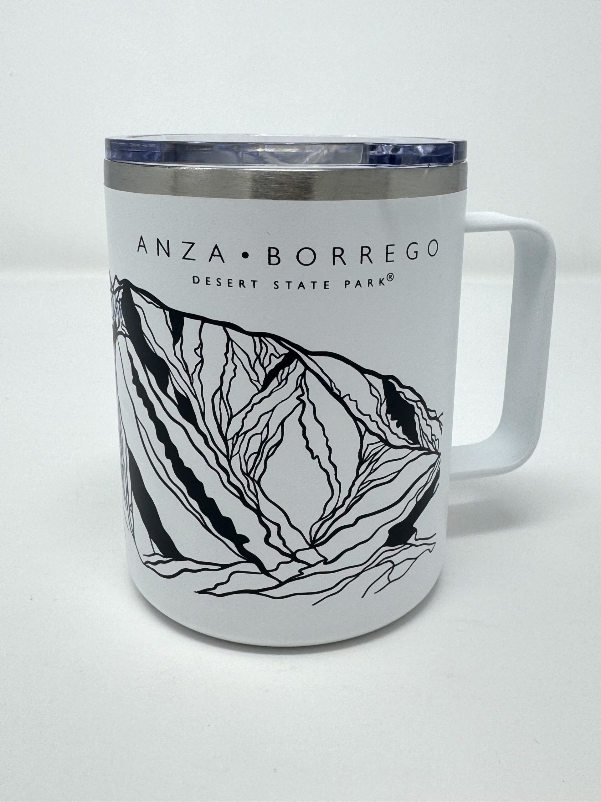Take a piece of Anza-Borrego with you wherever the day leads. This insulated coffee tumbler features a clean, minimalist line illustration of Indianhead Mountain, one of the park’s most recognizable landmarks, wrapped in a bold, modern design.