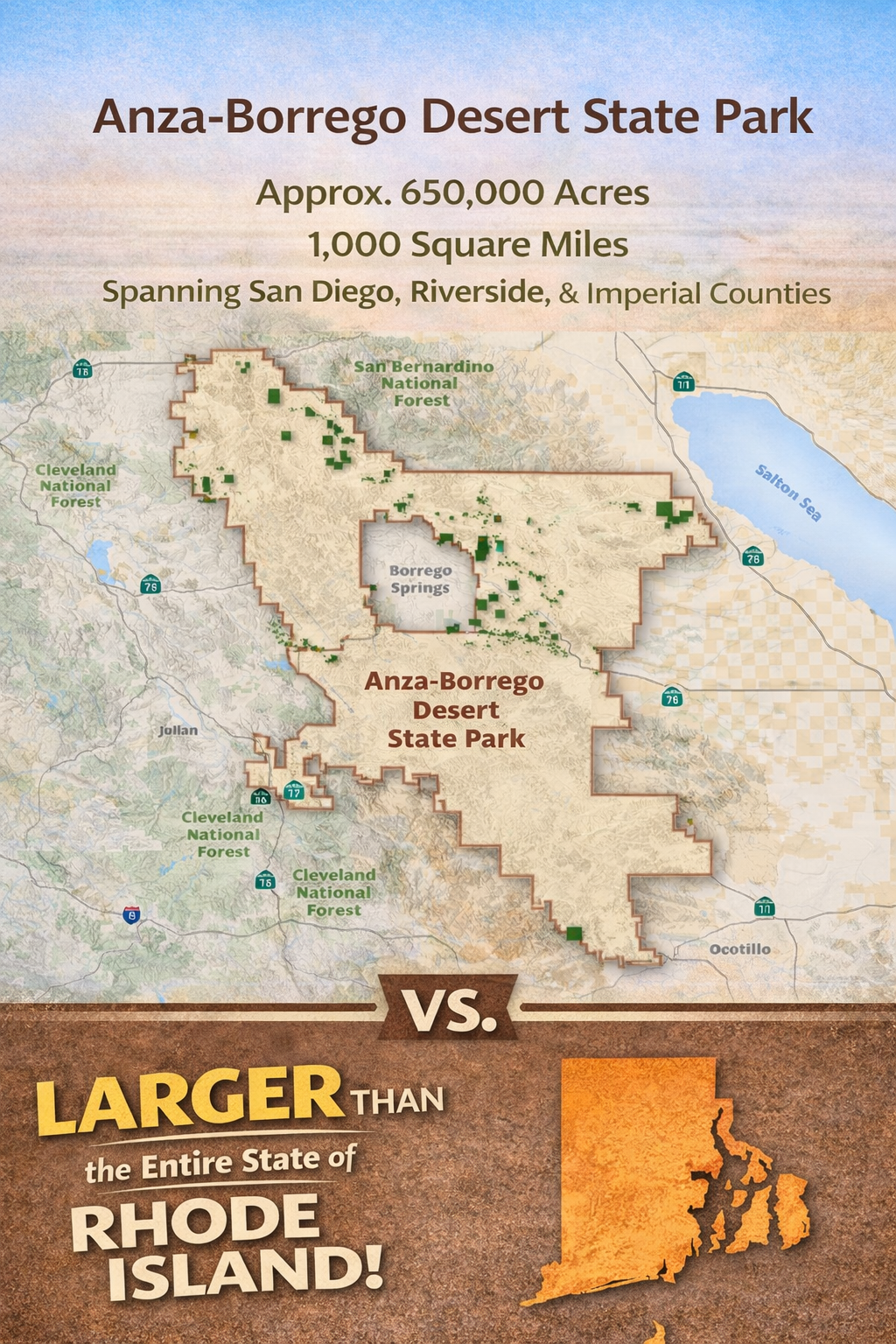 Anza-Borrego is larger than the entire state of Rhode Island.